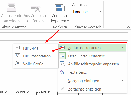 Wenn Sie die passende Anzeige eingestellt haben, kopieren Sie die Zeitachse mit Rechtsklick für Ihre Präsentation oder E-Mail wie üblich.
